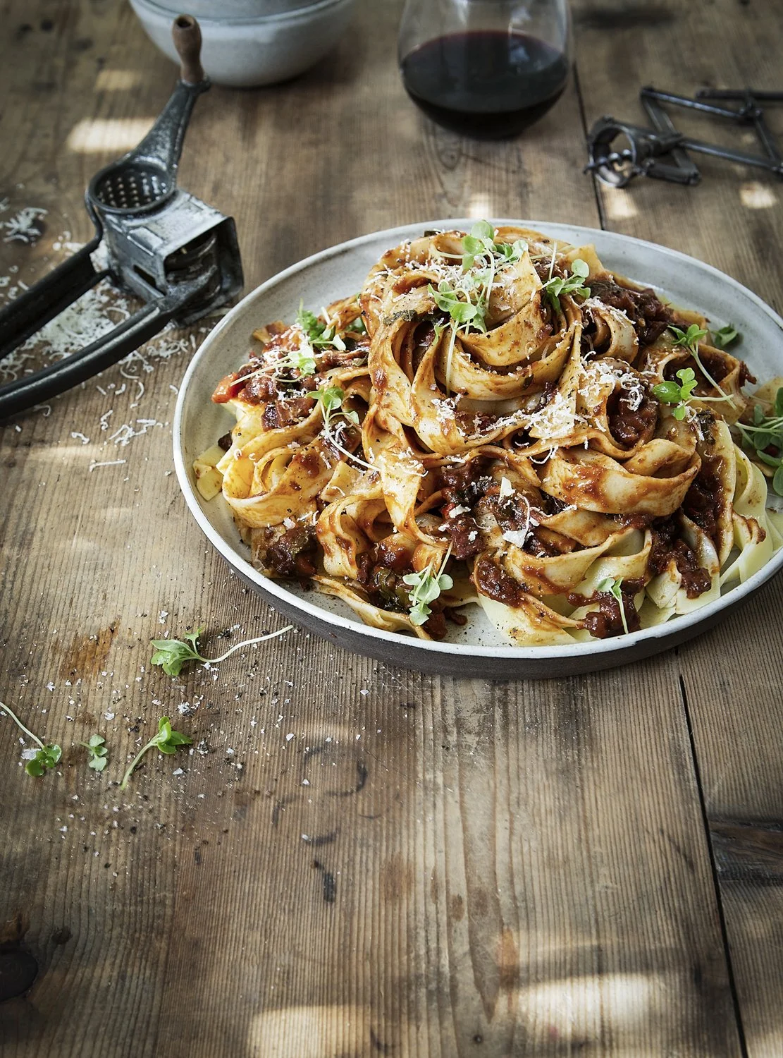 MUSHROOM + BLUE CHEESE PASTA, WALNUT CRUMB